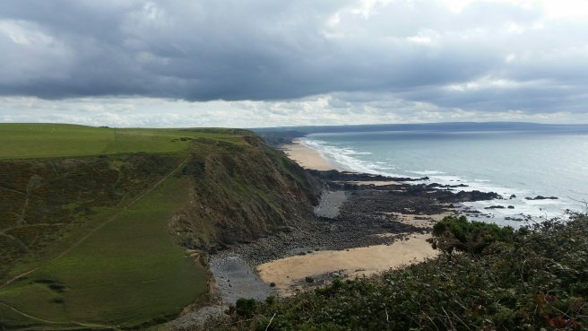 I scrounged for blackberries on Harscott High Cliff and checked out the lay of the land before scrambling the very long down to Duckpool. It seemed to me that the beach was pretty much clear (with the exception of one set of rocks) from Duckpool to Bude. The tide was out and well, it was either that or climb three more down-ups over the remaining 8 km to Bude.
