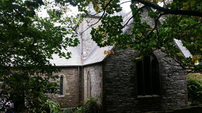 Rounding behind Place House, the path bisects a graveyard for this gorgeous little church.