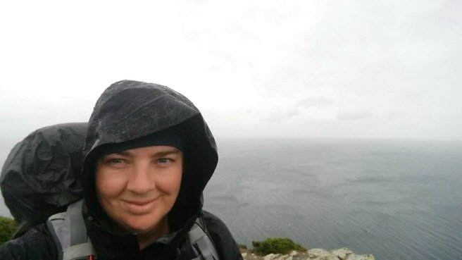 A wet and windy morning – perfect for a steep climb up an exposed headland!