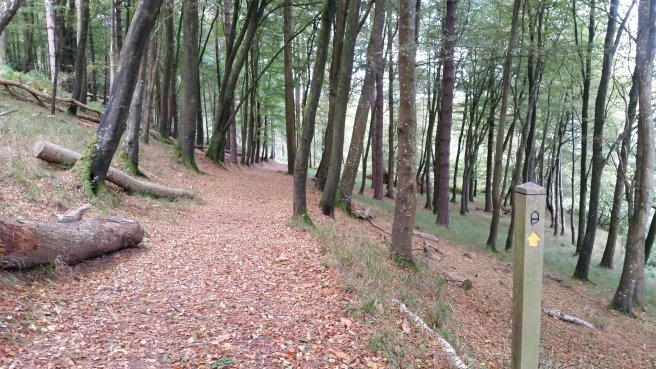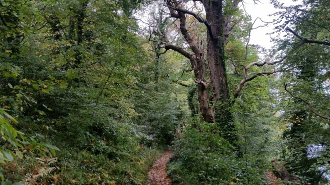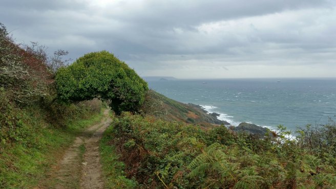 Rounding Penlee Point brought a welcome reprieve from the wind as the path droped slowly down into sheltered woods.
