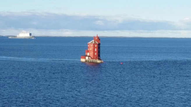 Departing Trondheim, the ship passes Munkholmen…