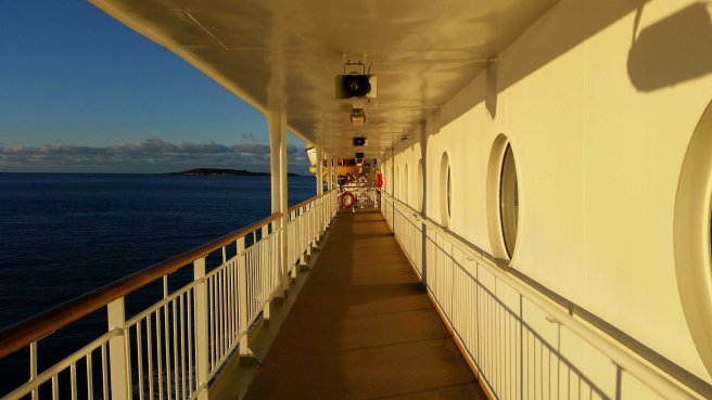 In the intervening times, I busied myself doing laps of the promenade deck in the freezing cold sunshine that gradually turned to gold,…