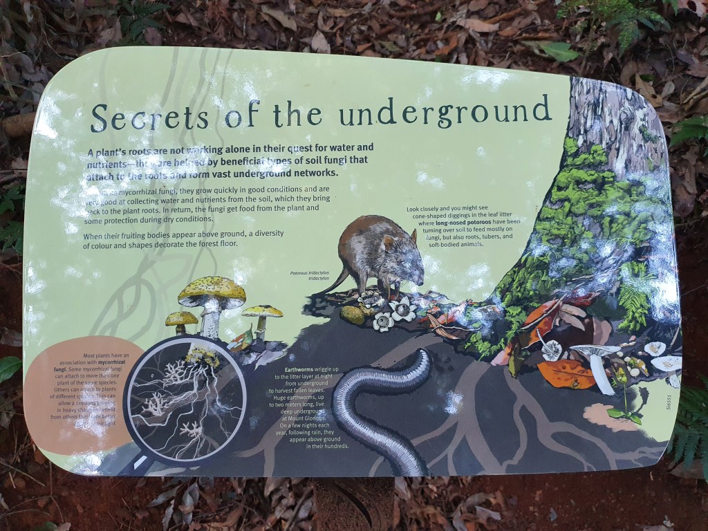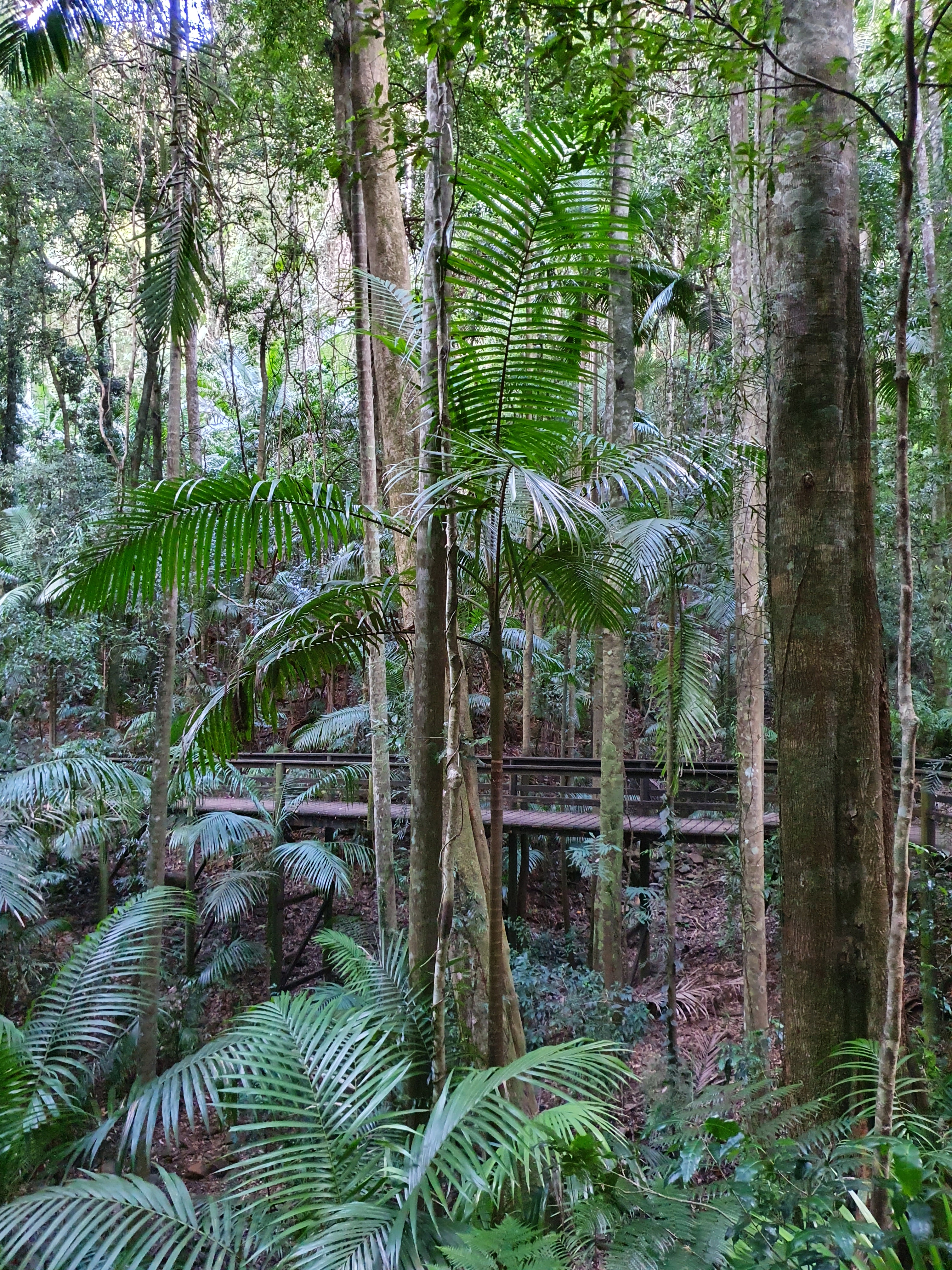 The Rainforest Circuit is a sweet walk that winds through a light-dappled gully, lush with rainforest ferns and fig trees and a fair number of super-tall, spotted gum trees towering over the canopy.