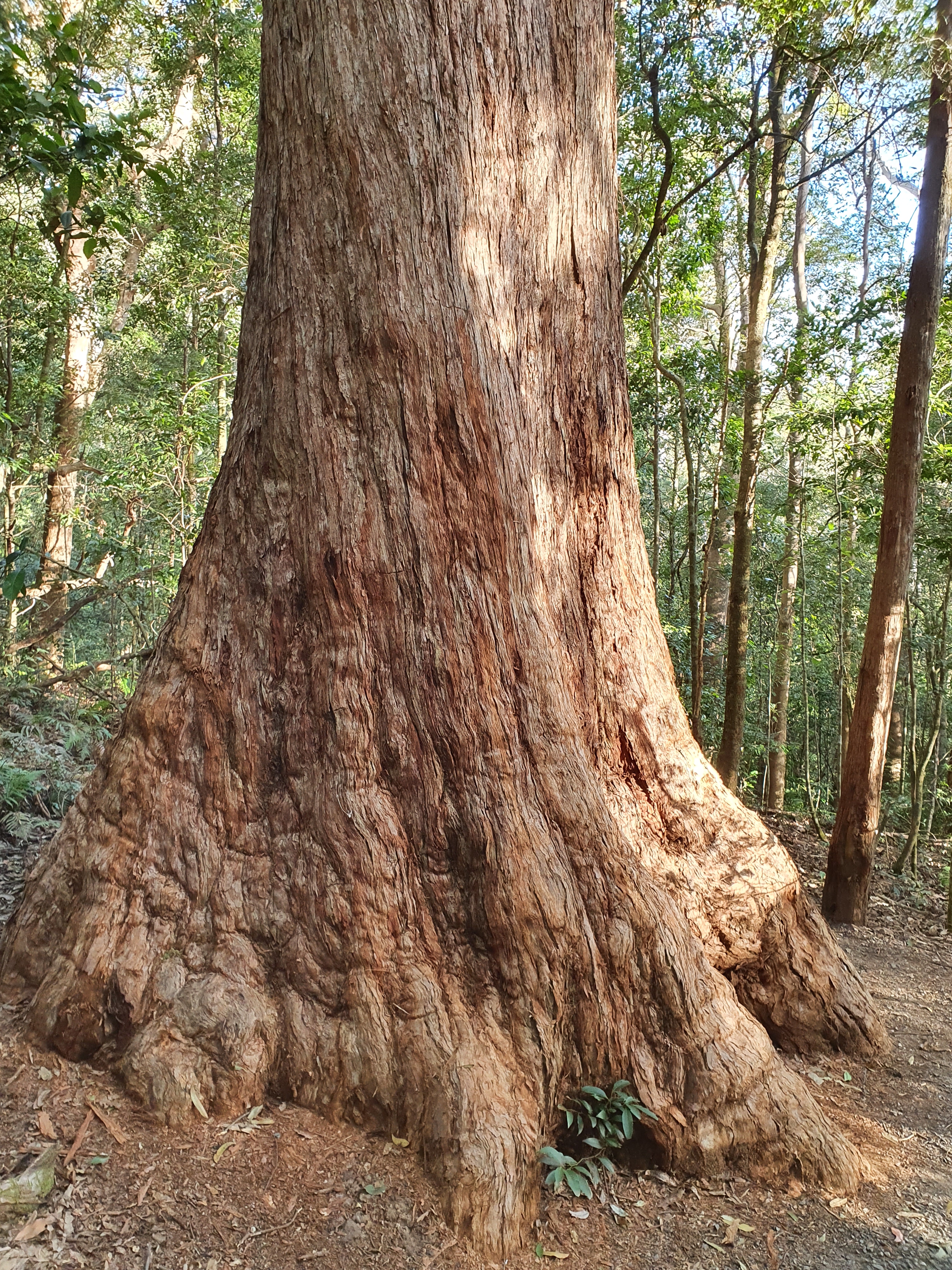 This enormous gum (which I think is an iron bark) looks just like what I imagine a mammoth foot might have looked like back in the day. No mammoths to be wary of, but I’ve seen snakes on this path, so do watch out.